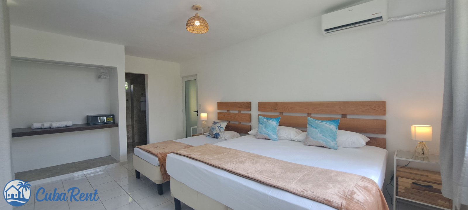 7 huéspedes en 3 habitaciones con baño en suite y camas king size (2 dobles + 1 triple). ¡Playa de arena blanca a solo 200 metros!