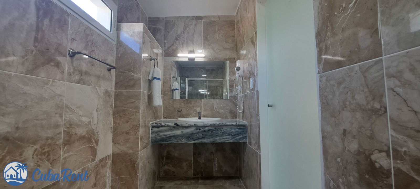 - Incluye: Lencería blanca, toallas de piscina, jabón, papel higiénico y carbón.
